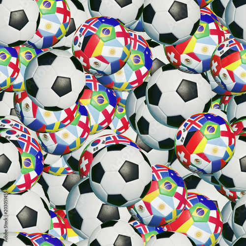 Fußball auf Spielfeld mit Teilnehmer Ländern