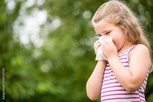 Girl with allergy cleaning nose