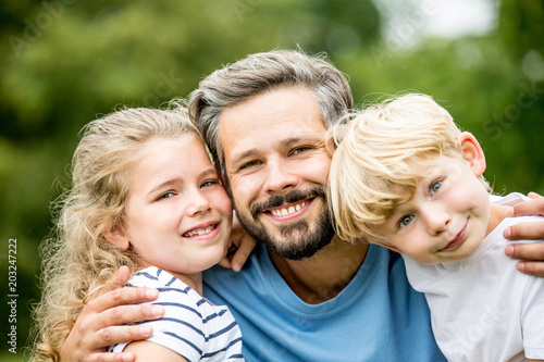 Children with father having fun