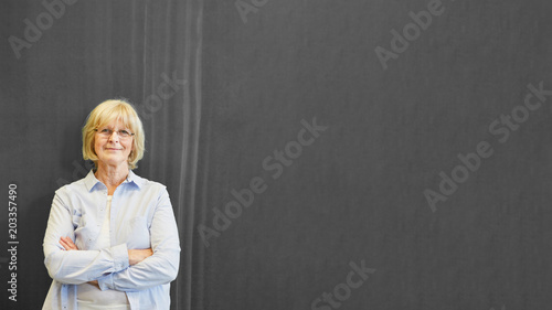 Frau als Dozent oder Professor vor Tafel im Unterricht