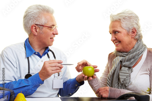 Ärztin empfiehlt Seniorin Apfel