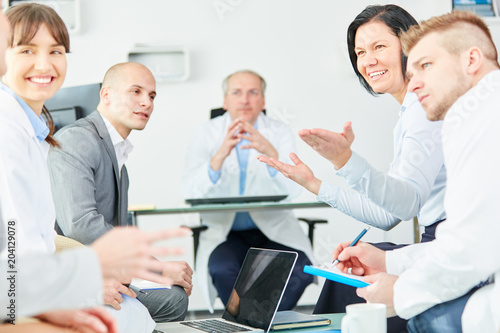 Mitarbeiter und Ärzte diskutieren in einem Meeting