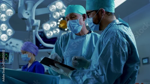 Focused healthcare professionals in an emergency room, working amidst advanced medical equipment