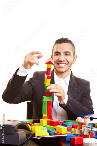 Manager mit bunten Bausteinen