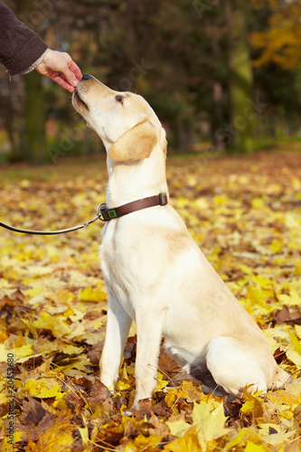 Labrador Retriever wird gefüttert