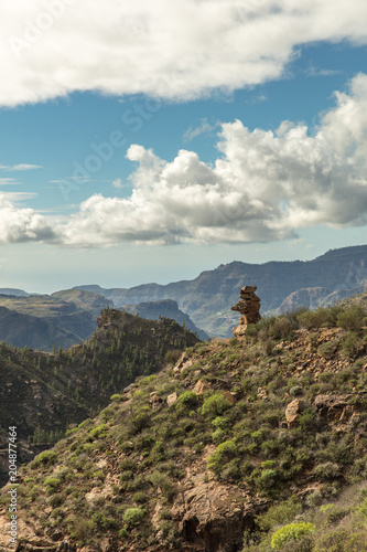 Gebirge in Landschaft mit Roque Nublo auf Gran Canaria