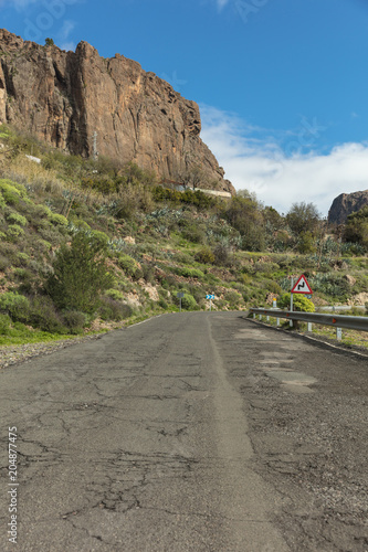 Straße mit kaputter Fahrbahn in Gran Canaria