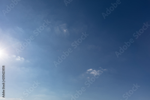 Clear blue sky with some small white clouds on sunny day