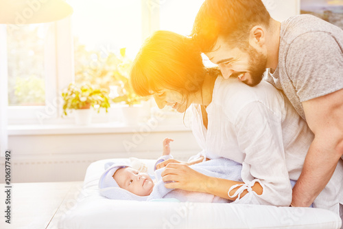 Glückliche alleinerziehende Mutter mit Baby und Kind