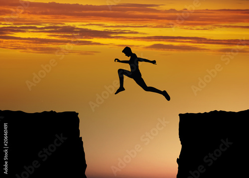 Mut und Fitness Konzept mit Sprung zwischen Felsen
