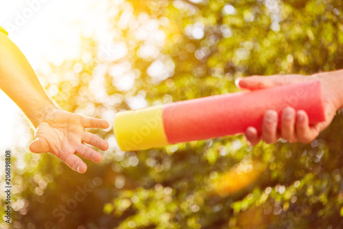 Zusammenarbeit Konzept mit Staffelstab Übergabe