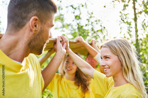 Gruppe beim gemeinsam Klettern im Kletterwald