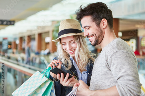 Junges Paar im Jeans Mode Shop beim Einkaufen