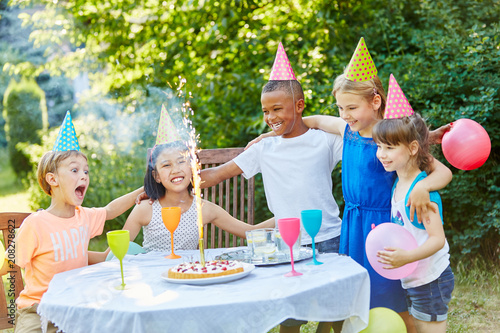 Group of kids celebrate birthday