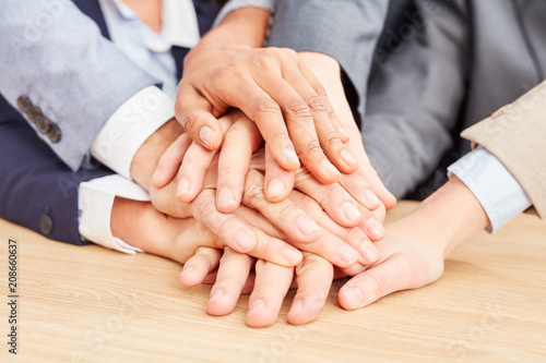 Geschäftsleute stapeln Hände für Teamentwicklung