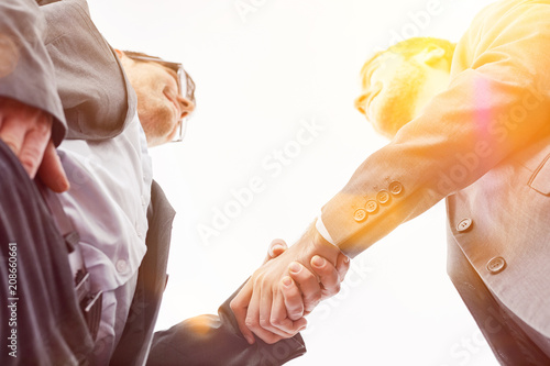 Business people at the shakehands for greeting and congratulation