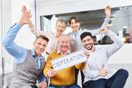 Panorama aus Silhouetten von Geschäftsleuten vor bunten Business Portraits