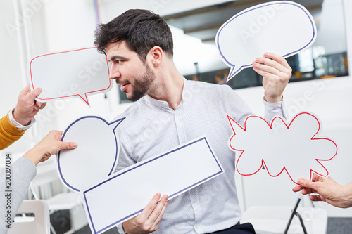 Panorama aus Silhouetten von Geschäftsleuten vor bunten Business Portraits