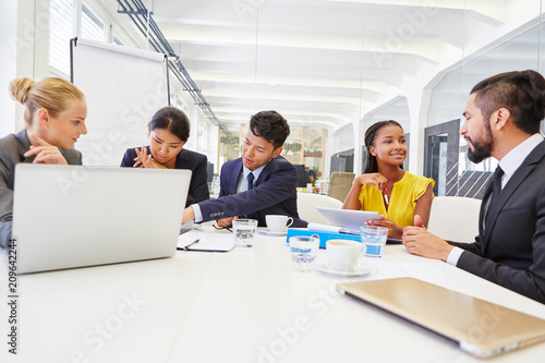 Panorama aus Silhouetten von Geschäftsleuten vor bunten Business Portraits