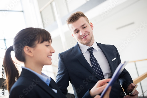 Junger Geschäftsmann und Kollegin mit einer Checkliste