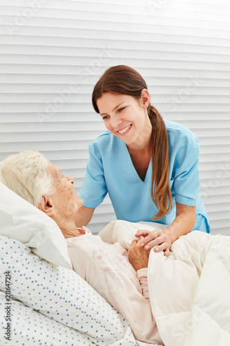 Altenpflegerin betreut kranke Seniorin
