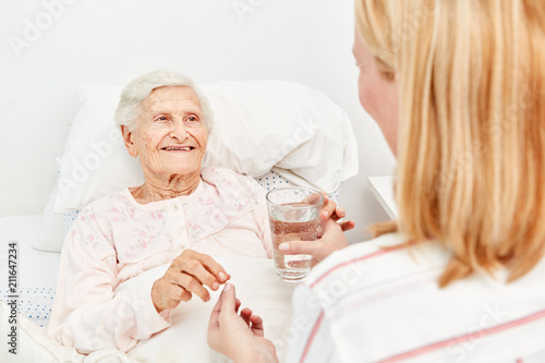 Altenpflegerin betreut kranke Seniorin