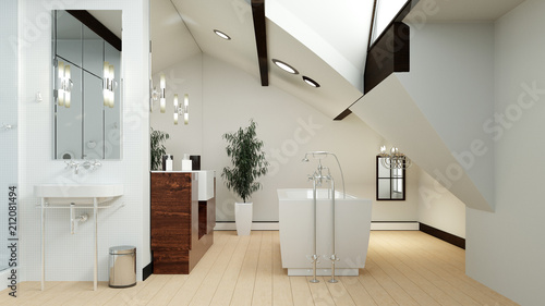Modernes Bad im Dachgeschoss mit Dachschräge