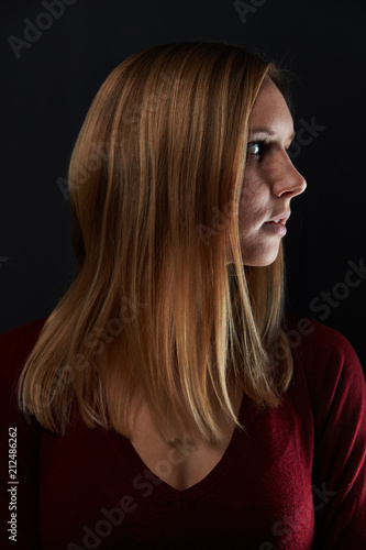 Junge Frau mit blonden Haaren im Profil
