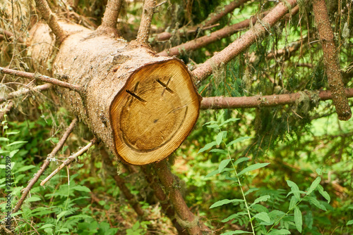 Smiley Gesicht in einem abgeholzten Baumstamm