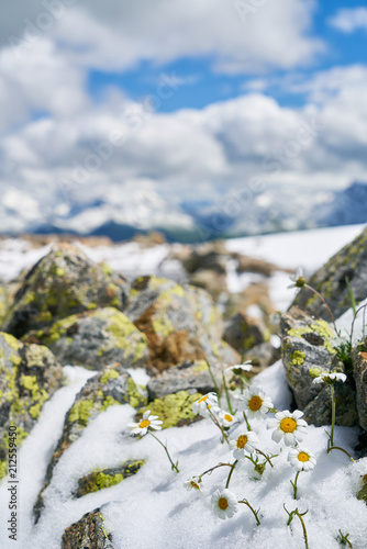 Fußspuren im Schnee auf Wanderweg in den Alpen