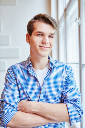 Lächelnder Student mit verschränkten Armen