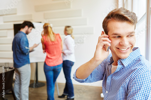Junger Mann beim Telefonieren im Meeting