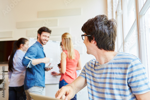Panorama aus Silhouetten von Geschäftsleuten vor bunten Business Portraits