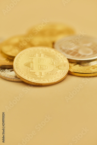 Bitcoin Münzen auf Haufen als Kryptowährung