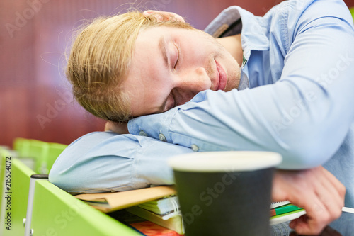 Student schläft erschöpft vom Lernen