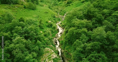 Stunning Mountain River Flowing Through Lush Green Forest in the Austrian Alps in Summer.
