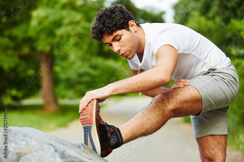 Junge Männer dehnen Beine