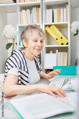 Ältere Geschäftsfrau trinkt eine Tasse Kaffee