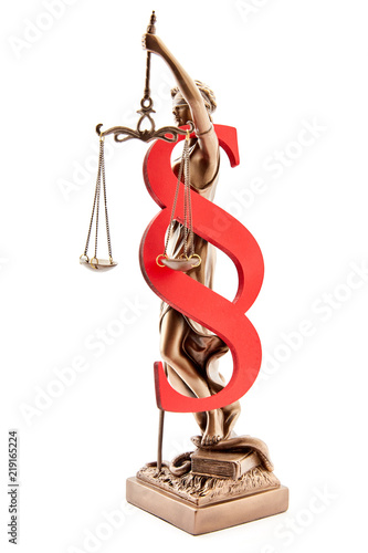 Justitia mit Paragraph Symbol als Gesetz Konzept