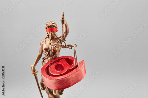 Justitia mit Paragraph auf Waage als Gesetz Konzept