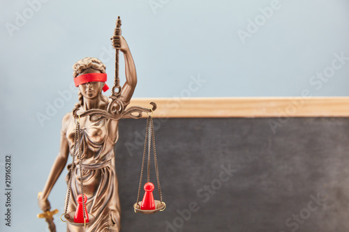Justitia vor Tafel als Rechtsberatung und Jurastudium Konzept