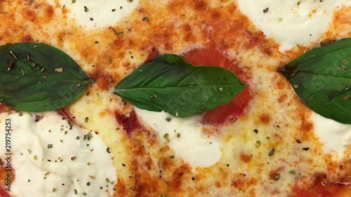 Zooming in on a freshly baked pizza margherita
