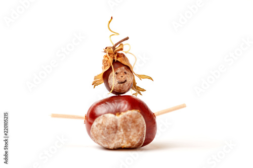 Niedliche Kastanienfigur aus Kastanien im Herbst