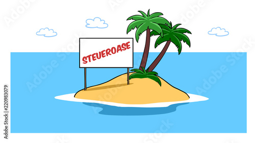 Einsame Insel im weiten Ozean mit Hinweis Schild