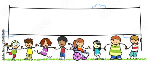 Gruppe Cartoon Kinder hängt an Leine als Trennlinie