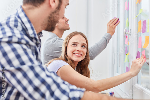 Hand mit Lupe sucht in Portraits als Umfrage und Marktforschung Konzept