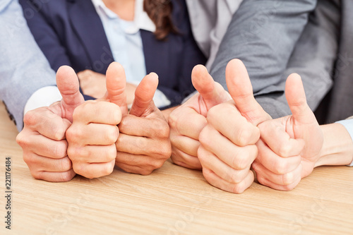 Group of business people showing thumbs up for success