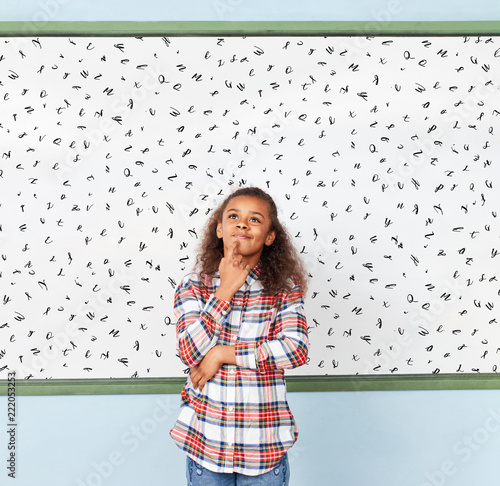 Afrikanisches Mädchen in Schule vor Whiteboard