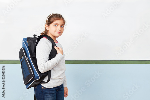 Schülerin mit Schulranzen in der Grundschule