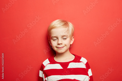 Blonde German preschooler in red with a joyful expression